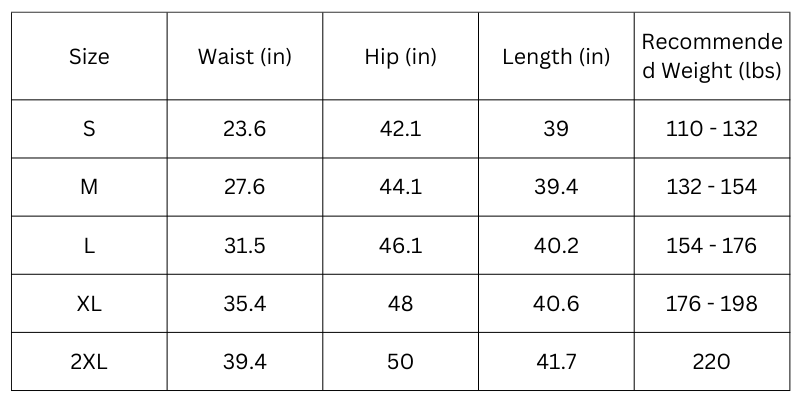 Size Chart (Inches):