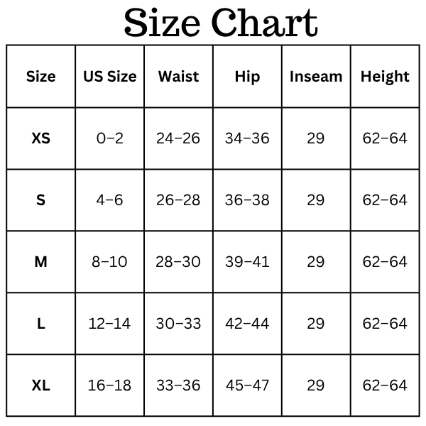 Size Chart (inches):
