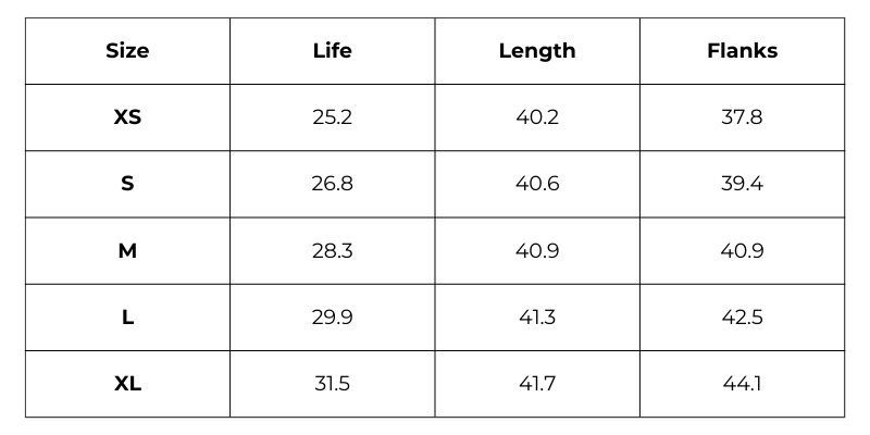 Size Chart (Inches):