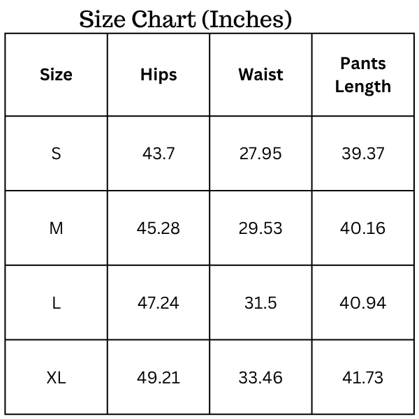 Size Chart (inches):